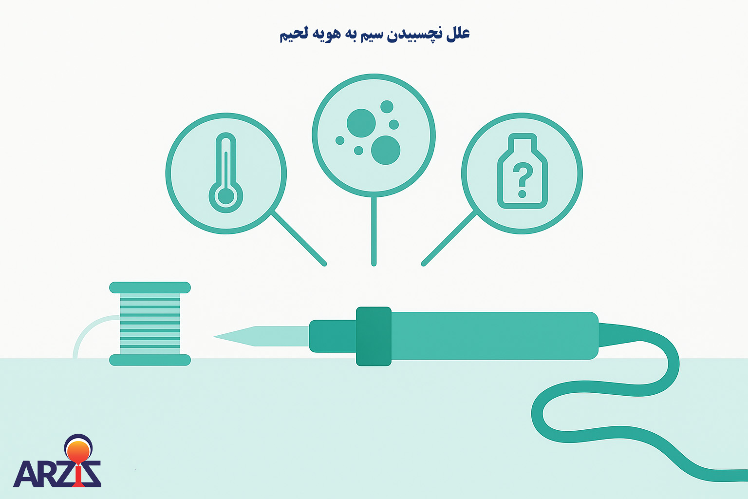 کیفیت سیم لحیم تأثیر مستقیم بر استحکام و دوام اتصال دارد. استفاده از سیم لحیم بیکیفیت، شامل ترکیب نامناسب آلیاژ، وجود ناخالصی یا نبود فلاکس (روغن لحیم) کافی در هسته سیم، میتواند منجر به عدم برقراری اتصال مطمئن و پایدار شود. توصیه میشود برای دستیابی به نتیجه مطلوب، همیشه از سیم لحیم استاندارد و دارای فلاکس با کیفیت استفاده کنید.