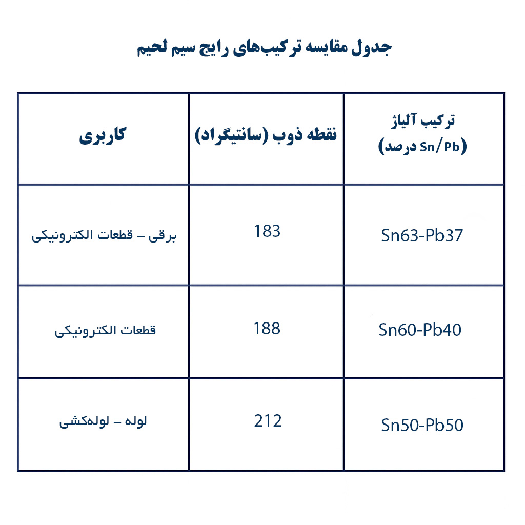 سیم لحیم معمولاً از ترکیب دو فلز اصلی، قلع (Sn) و سرب (Pb)، ساخته میشود.