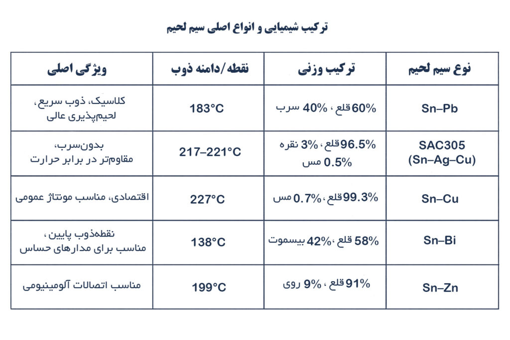 - ASTM B32: الزامات شیمیایی و فیزیکی سیمهای لحیم